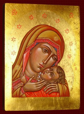 Ikona pisana (malowana) tradycyjną techniką ikonopisarską: