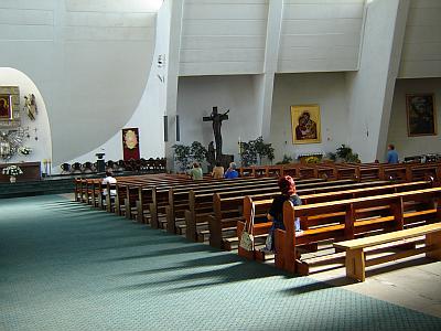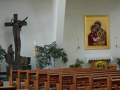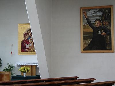 Nowoczesny kościół z końca XXw. w którym znajdują się dwa wielkoformatowe